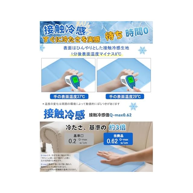 【28℃以下で自然に冷却回復】高品質高分子複合相変性材料を採用したひんやりマットは、Q-max値0.62w/cm²(基準値の約3倍)の高い冷却効率により、頭部や背中に密着させた瞬間からひんやり冷感が広がり、効率的に体温を低下させます。気温28℃以下の環境(冷房室内・冷蔵庫・冷凍庫など)に置くだけで自然に冷却回復し、冷たさで約60~120分の持続冷却を実現。冷凍庫で冷やすとさらに冷却効果と持続時間が向上します。赤ちゃんのベビーカー冷却から大人の快眠グッズ、さらには炎天下の外出や災害時の防災備品としても安心してご利用いただけます。エアコンや扇風機との併用で冷感効果が増すため省エネにも貢献し、使用後は涼しい場所に置くだけで再冷却回復する繰り返し使用が可能します。