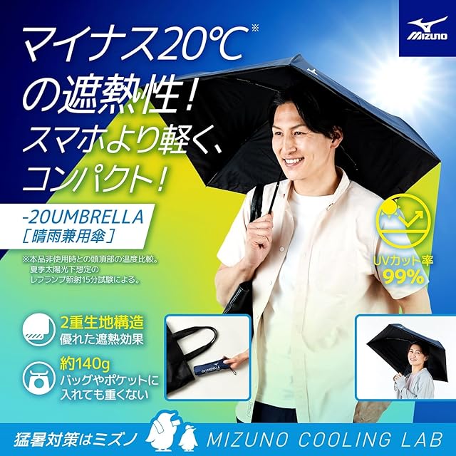 商品名:MIZUNO(ミズノ) 日傘 -20 UMBRELLA PEANUTS トゥエンティアンダーアンブレラ ピーナッツ ユニセックス 軽量約140g 親骨長さ約50cm 晴雨兼用 UVカット率99% ダブルシェード構造 ラテ/チョコレート 収納袋付