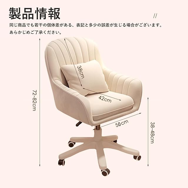 商品名:PQNLXLN デスクチェア ベロア 可愛い おしゃれ ふわふわ ドレッサーチェア 背もたれ メイクアップチェア キャスター付き