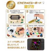 【幼児用の光るビジーボード】ピカピカ★ビジーボードはさまざまな形状の10カ所のスイッチと、それらのスイッチで点灯する23種類のLEDライトが配置されています。 スイッチやダイヤルを操作したり、ケーブルの抜き差しなど、様々な仕掛けがお子様の好奇心を刺激し、長時間楽しめるおもちゃです。 遊ぶには単4電池2本が必要です(電池は付属しません)。