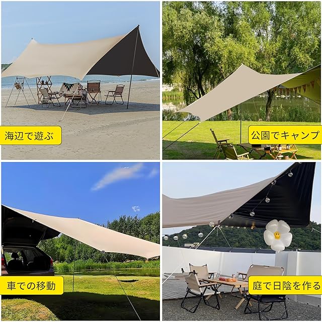 【多重使用シーン&あなたの選択】Minezaki 防水オクタタープ 人数や場所に応じて使用でき、用途は多様です。花見、花火鑑賞、ピクニック、ハイキング、公園、スポーツ大会などの活動に利用でき、レジャーマットとしても使用できます。八つの角をロープで引っ張ることで天幕に変わり、タープテントや日よけとして使用でき、釣り、キャンプ、登山、海辺の遊び、車での移動やモビガーデン タープ、さまざまなアウトドアシーンに適しています。