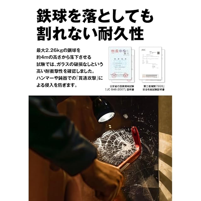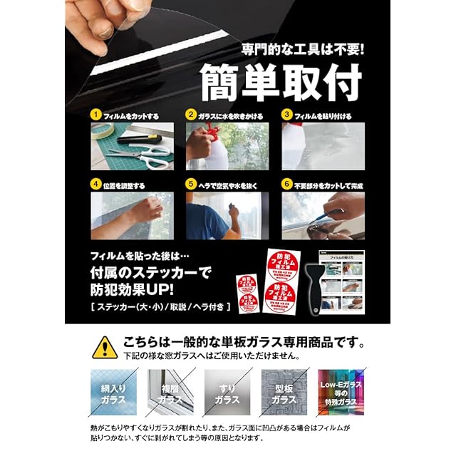 【空き巣対策の第一歩は窓から】空き巣の約7割が「窓ガラス破り」から侵入すると言われています。 本製品は、超厚300μm(0.3mm)の高強度PET素材を使用した、防犯専用の窓ガラス用フィルムです。
