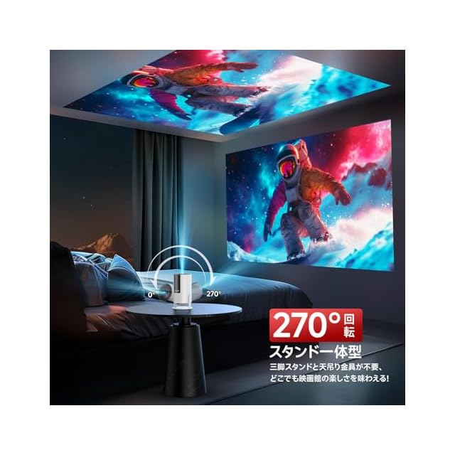商品名:JOWLURK プロジェクター 家庭用【2025 Android TV・市販唯一電動フォーカス・270°回転】 小型 天井投影 20000LM 4K対応 真1080P 自動台形補正 Wi-Fi6 Bluetooth5.4 スタンド一体型 Hi-Fiスピーカー 50%ズーム ホームプロジェクター 短距離投影 iOS/Android/パソコン/DVD/PS機対応 プレゼント 日本語説明書