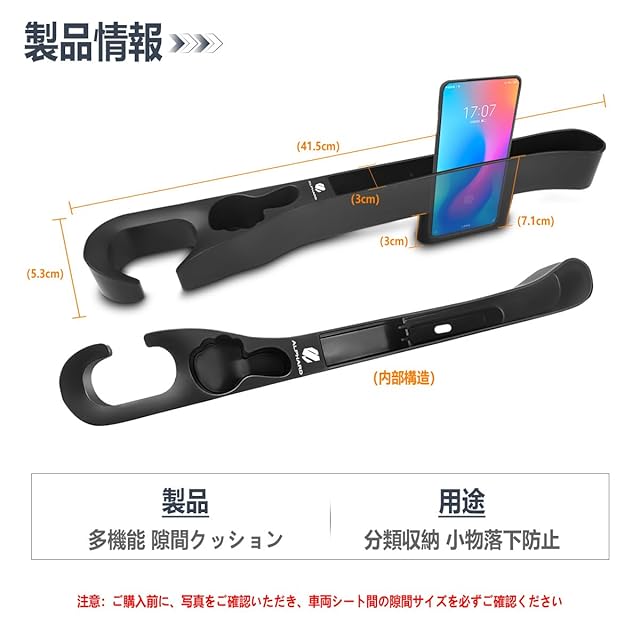 <BR>アルファード 分類収納 隙間クッション<BR> <BR>【用途】<BR> <BR>分類収納 小物落下防止<BR> <BR>【弊社製品】<BR> <BR>・専用ロゴデザイン<BR> <BR>・純正風ロゴで車内に統一感をプラス<BR> <BR>・深さのある設計(他社比+20%の大容量)、設置後もガタつかずしっかり固定!<BR> <BR>・底部を深くすることで収納スペース拡大&走行中の落下防止<BR> <BR>・走行中の物の飛び出しを防止<BR> <BR>・分類収納設計<BR> <BR>・収納スペースを拡張し、よく使う小物をスッキリ整理<BR> <BR>・分類エリアで一目で物がわかり、サッと取り出せる<BR> <BR>ご不明な点がございましたら、いつでもお気軽にご連絡ください。全力でサポートさせていただきます。<BR>