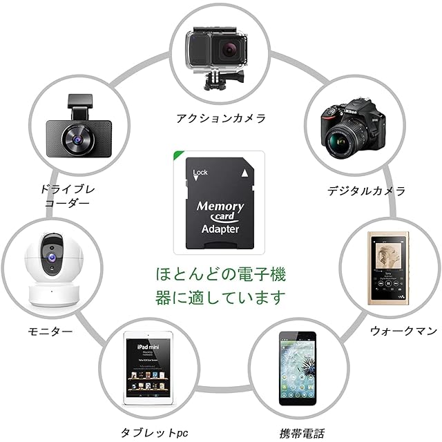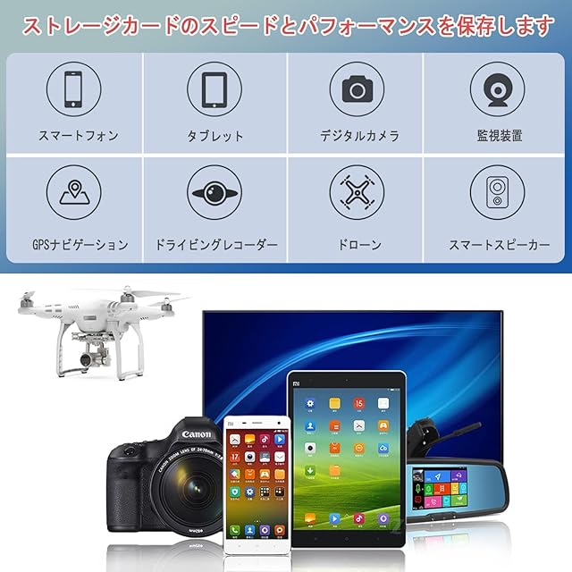 幅広い用途:全てのドライブレコーダーに適用します。ビデオ監視カメラ、監視カメラ、スマフォーン、アクションカメラ、ドローン、タブレットなどのマイクロ UHS-Iに対応した機器にも適用します。