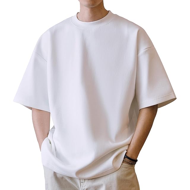 [CHANGE WELL] メンズ「2024 SS」ファッション 春夏服 9オンス エアレイヤー (半袖) スウェット 厚手 ストレッチ ビッグシルエット Tシャツカットソー (ホワイト, L)