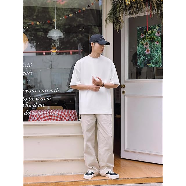 商品名:[CHANGE WELL] メンズ「2024 SS」ファッション 春夏服 9オンス エアレイヤー (半袖) スウェット 厚手 ストレッチ ビッグシルエット Tシャツカットソー (ホワイト, L)