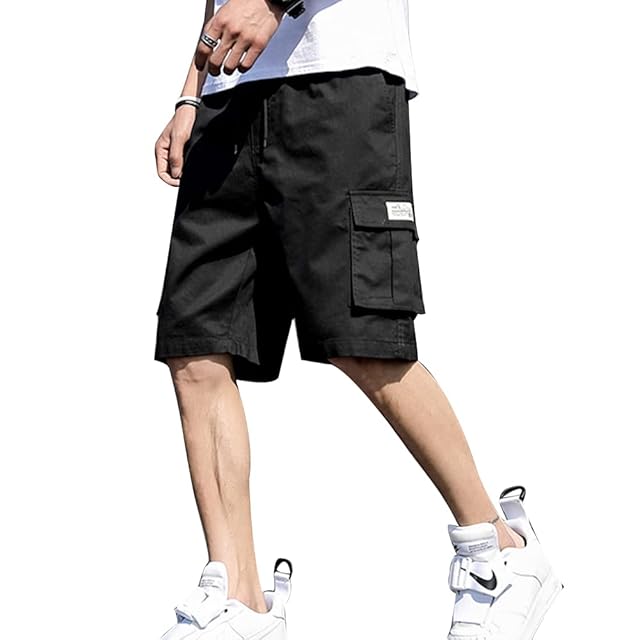 商品名:カーゴパンツ ショートパンツ メンズ ハーフパンツ 短パン 登山 スポーツ アウトドア 半ズボン 5分丈 トレッキング 作業着 通気速乾 ウエストゴム 調整紐 シンプル オシャレ ポケット付き ボトムス おしゃれ black-M