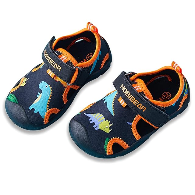 [くもにせ] キッズ ベビー マリンシューズ サンダル ビーチ ウォーター スポーツ シューズ 男の子 女の子 アウトドア 子供 靴 つま先保護 通気性 屈曲性 恐竜ブラック 14.0cm