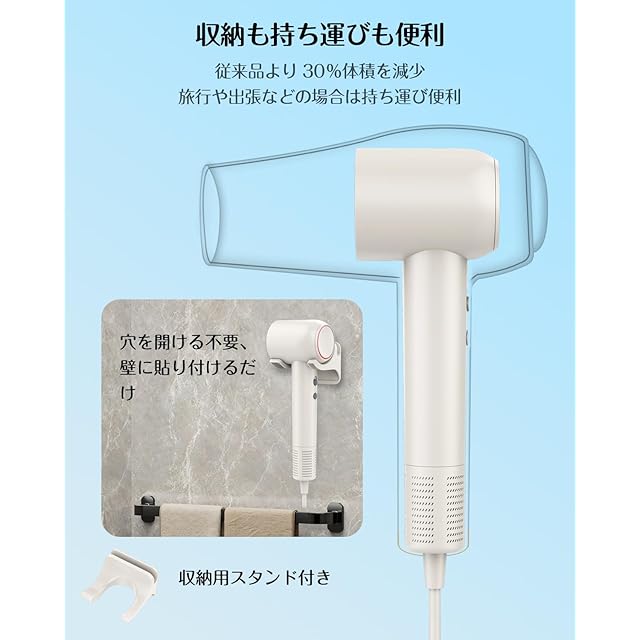 【過熱保護装置&収納とお手入れ簡単】ドライヤーは内蔵過熱保護装置:温度が異常上昇を検知すると自動で電源が切れるため、安心して使用できます。専用の壁スタンド付きは嬉しいポイント。使用後、ドライヤーを掛けで収納完了。取り外し可能なカバー付、吸込口についたホコリをお手入れするときに便利です。ご注意:金属製のネットは髪の毛の吸い込みを防ぎますが、本製品(ドライヤー)をご使用の際は、髪の毛が吸気口に近づかないよう引き続きご注意ください。
