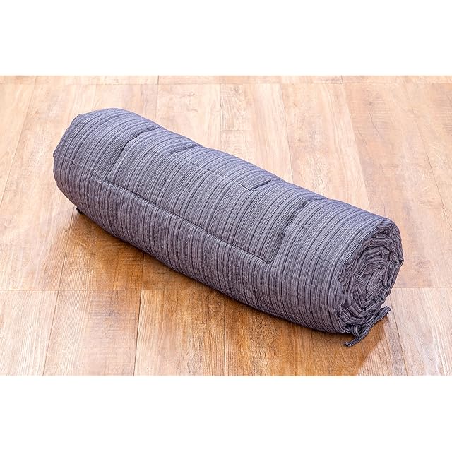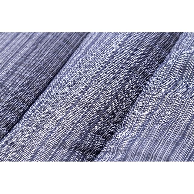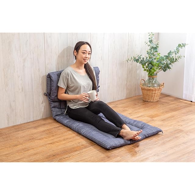 しじら織とは? ・縮(ちぢみ)織の一種。タテ糸の太さの違いを利用して織りあげ布の表面に波状(凹凸感)がある生地。 凹凸感があるので肌に触れる部分が少なくシャリ感のあるさらっとした風合いがあります。 ポイント-1 ●さらっとした肌触り・綿しじら100% ・贅沢な天然綿素材100%っを採用しており、化学繊維と比べるとはるかにやさしい肌触りを持っております。 綿は吸水性にも優れ、吸収した水分は外に発散されるので、通気性が良く、シーズンを通して快適に使うことができます。 ・綿糸を独特なしじら織に織り上げ、表面が波状になっており、汗をかいた肌で触れてもべたつかず、肌離れが良いのが特長。 ・こうした綿しじらは紺色の無地と取り合わせらせ、見た目に落ち着いた高級感が出されます。 ●超軽量 ・製品重量はわずか1.2㎏です。女性一人でも片付けが簡単にできます。 ・毎日出し入れしてもラクラク。さらに軽量タイプなのに厚みが約4㎝ありますので、床つき感軽減でボリューム感たっぷりです。 ●限られた空間を快適に ・わざわざ夜の重たい布団をださなくでも、気軽に昼寝やうたた寝ができます。側地サイズ70x180㎝の大きさで、寝転がるのに充分です。 ・自分用だけでなく、来客用の敷布団にも使えます。 ・また、3分の1のところで折りたたんで、壁などに寄せて即席のソファができます。 ・テレビ、スマホを見る時間や、読書、ゲームの時間をより快適にできます。半分に折りたたむと大きめサイズの座布団の形になります。 ●側地サイズ ・側地(わたを入れる前の生地)サイズです。出来上がりサイズは少し小さくなります。