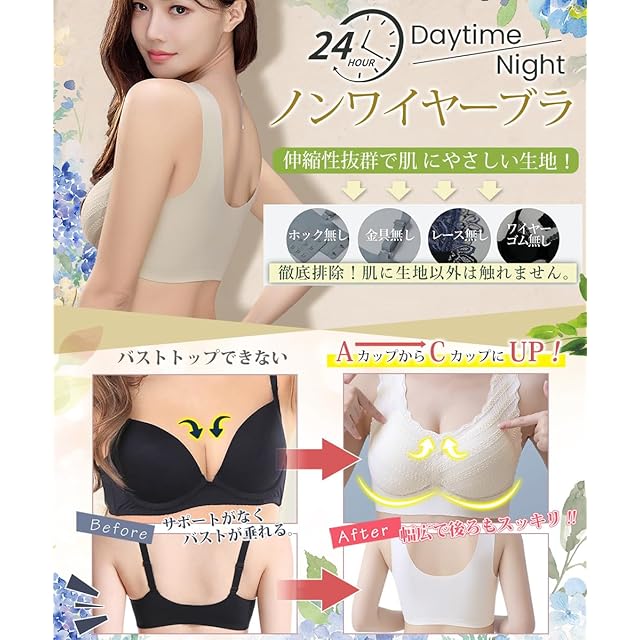 【24H使えるブラ】肌の健康を守り、美しいボディを形成することを目的とした生産理念を掲げています。家で着て、出勤して、运动して寝ることができます。ヨガ、ジム、スポーツ、ダンス、運動、内着あるいは外着、妊娠と哺乳期間睡眠時幅広くお使いいただけます。手洗いはオススメの洗濯方法です。