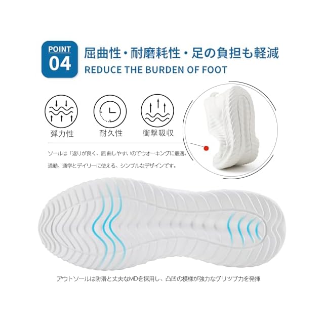 【滑り止め&耐久性&防音性】凹凸デザインのソールが優れたトラクションを提供。雨の日や滑りやすい路面でも安心して歩けます。アウトソールにはラバーを増量し、快適な履き心地と抜群の耐久性を実現。耐磨耗性も抜群で、長く愛用いただけます。さらに、歩行時の静音性も高く、日常生活でのストレスを軽減。快適で安心な毎日をサポートする一足です。今すぐ試して、その違いを実感してください!