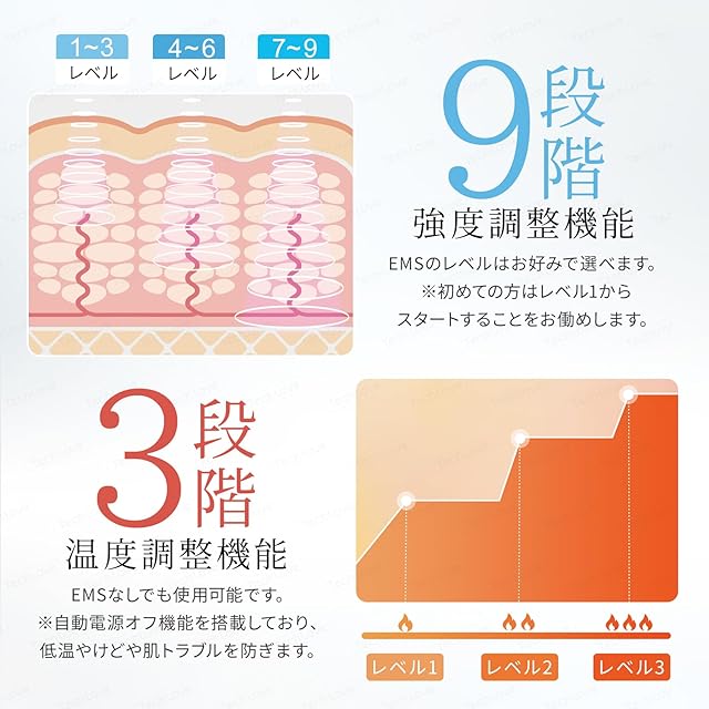 ✅「EMS・温熱機能」5つのモードと9段階の強度調節に対応しており、アプローチが難しい深層まで届いているのを実感できます。4050m㎡の温感パッドで広範囲を均一に速熱。手首をじんわりと温め、3段階で選べる心地よい温熱ケア。寒い季節や冷房の効いた室内などで、温熱機能のみを使っていただくのもおススメです。