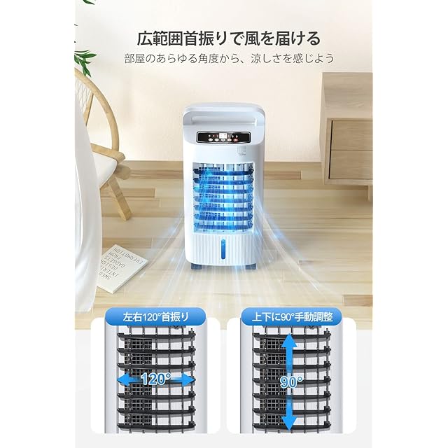 【部屋全体に涼風を届ける冷風扇!上下左右の送風で快適空間を演出】スリムな外観ながら、左右120度の自動首振りと上下90度の手動調整機能で、リビング全体をまんべんなく冷やす冷風扇風機。直感的に操作できる日本語タッチパネルと、遠隔操作に便利なリモコン付き。静音性にも優れており、子供の昼寝や在宅ワーク中でも気兼ねなく使えます。家庭でもオフィスでも使いやすい、万能な移動式クーラーとして活躍します。