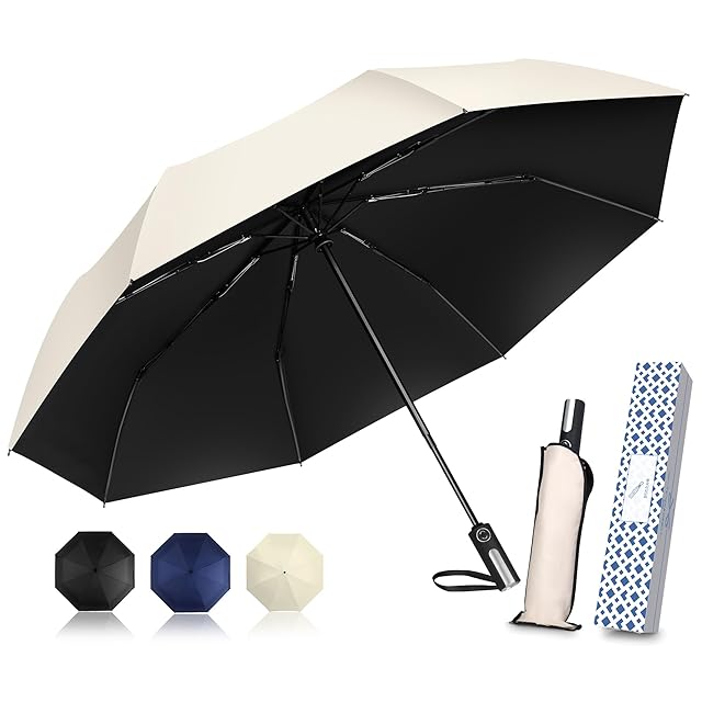 この折りたたみ傘は、ワンタッチでスムーズに開閉できる便利さと、高密度生地にテフロン撥水コーティングを施した超撥水機能を兼ね備えています。UVカット率99.9%で日差しからも守り、直径103cmの広い傘面は二人でもゆったり使用可能。軽量ながらアルミ合金とグラスファイバーを使用した8本骨構造で強風にも耐える耐久性を実現。シンプルで高級感あるデザインは日常使いから贈り物にも最適です。