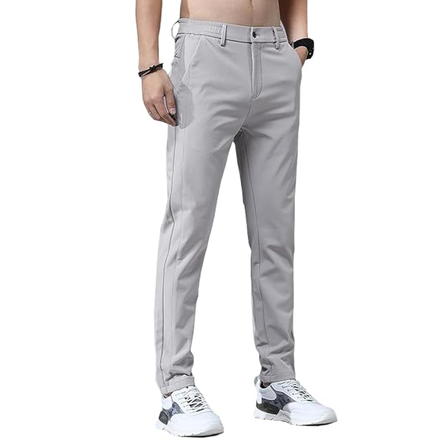[ROOKMZU] アイスシルクパンツ メンズ 接触冷感 ズボン メンズ 夏 パンツ ゴルフ ストレッチパンツ 冷感 涼しい 速乾カジュアル イージーパンツ ボトムス テーパードパンツ ビジネス スラックス 前開き 夏用ズボン