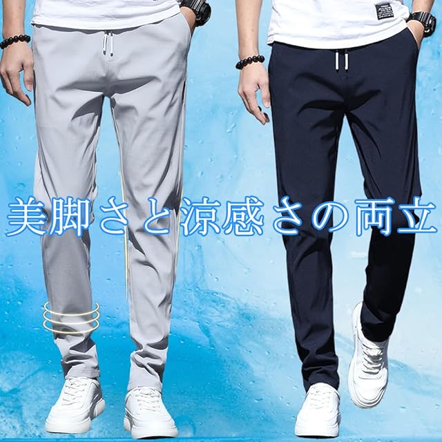 商品名:[ROOKMZU] アイスシルクパンツ メンズ 接触冷感 ズボン メンズ 夏 パンツ ゴルフ ストレッチパンツ 冷感 涼しい 速乾カジュアル イージーパンツ ボトムス テーパードパンツ ビジネス スラックス 前開き 夏用ズボン
