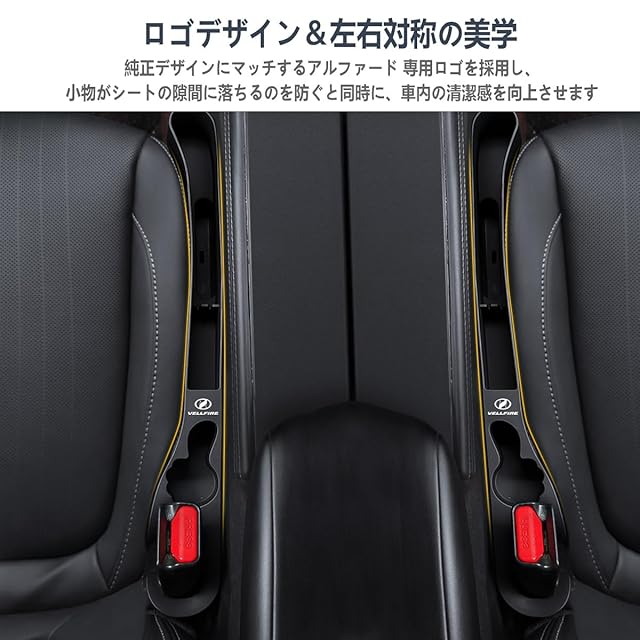 【ロゴデザイン&左右対称の美学】純正デザインにマッチするヴェルファイア専用ロゴを採用し、小物がシートの隙間に落ちるのを防ぐと同時に、車内の清潔感を向上させます。運転席・助手席用の2個セットで、ロゴは左右対称に配置。どちらの席から見ても美しく、車内の調和と洗練された印象を演出します。【適用車種】ヴェルファイア VELLFIRE 20系 30系 40系 などに適用します。