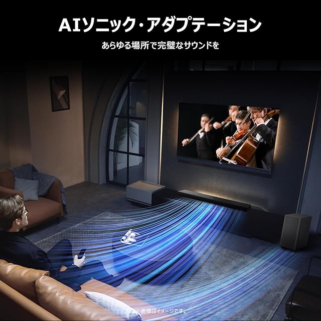 【AIソニック・アダプテーション】室内の音響を調整することで、あなた用に設えたカスタマイズサウンドを提供します。どこに座っていても、TCL ホーム・アプリを使ってお好みのスイートスポットを設定するだけです。