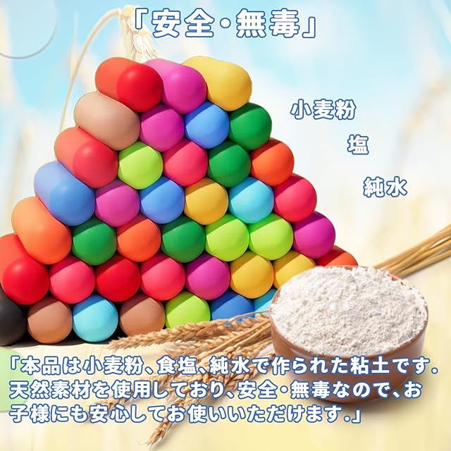 【安全性へのこだわり】小麦粘土は純水と天然ゴムノリで作られ、無毒で安全性に抜群です、安心して子供たちを遊ばせられます。安全で面白さが持っているから欧米であと言う間にDIYねんどブームを起こしました。YOUTUBEにも大人気ものとして活躍しています。6歳以上の子供に推奨。