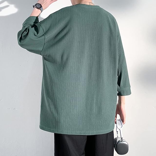 [Poperdision] 七分袖 Tシャツ メンズ 夏服 メンズ おしゃれ トップス 人気 無地 大きいサイズ シンプル オシャレ ゆったり 柔らかい肌触り 涼しい 快適 ファッション ビッグ シルエット かっこいい 春夏秋 Green XL
