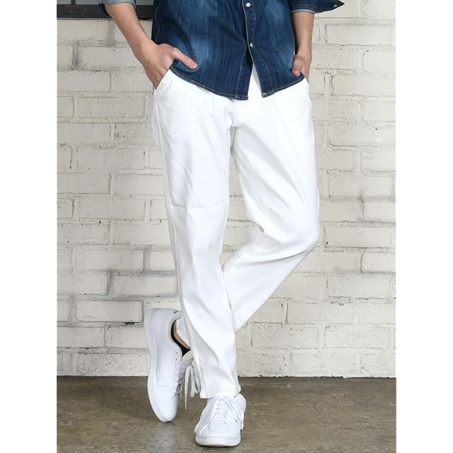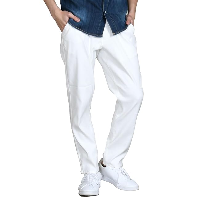 [スペイド] 接触冷感 ズボン メンズ パンツ 夏 冷感 涼しい イージーパンツ ボトムス チノパン ストレッチパンツ ストレッチ スリム 伸縮 超伸縮 ゆったり 30代 40代 50代 おうち 父の日 ギフト【e419 SS】 (JP, アルファベット, L, ホワイト)