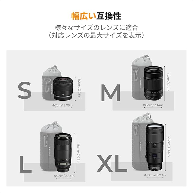 【多機種のレンズに対応】4つのサイズがあり、ほとんどのカメラレンズに対応しています。さまざまな撮影ニーズに合わせて複数のレンズを持ち運ぶのに便利です。また、屋外での撮影では、機材を整然と保管してほこりや損傷を防ぐことができます