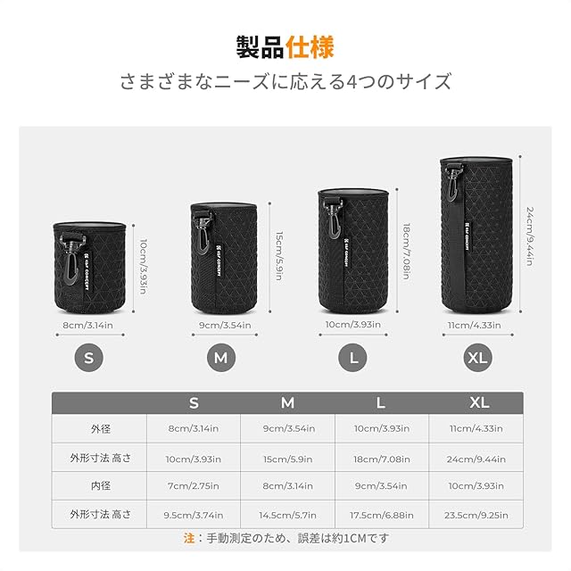 商品名:K&F Concept カメラ レンズケース 4個セット レンズポーチ 一眼レフレンズケース レンズ保護用ポーチ ソフト一眼レフ 防水 耐衝撃 持ち歩き 便利 収納 Sony Canon Nikon Pentax Olympus Panasonicなどのデジタル一眼レフカメラレンズ対応