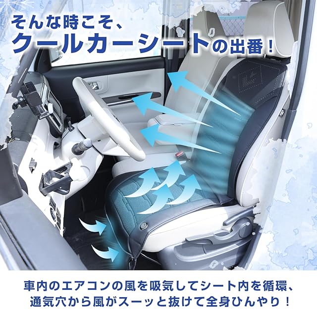 【日本の夏を快適にするスマートなカーシート】 高温多湿な夏の車内でも快適に過ごせるよう、クールカーシート12Vは優れた涼感性能と上質なデザインでドライブを快適にサポートします。