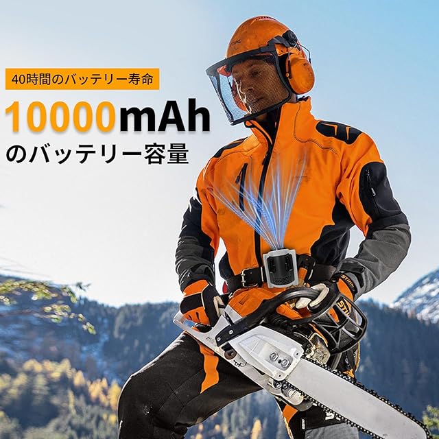 【長時間稼働】本製品は大容量10,000mAhバッテリーを搭載しています。微風モード(風量1)では最大40時間、最大風量モード(風量5)では最大6.5時間連続使用できます。フル充電には約4.5時間かかります。