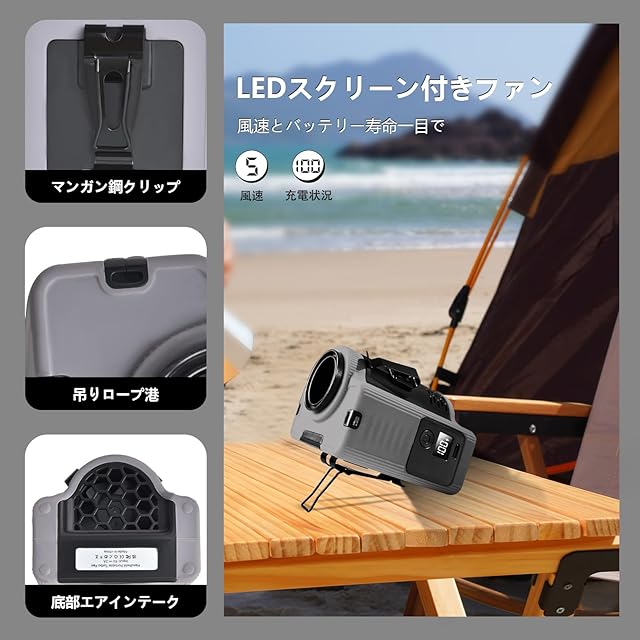 【LEDディスプレイでファンの状態が一目でわかります】デジタルディスプレイでは、バッテリー残量や風速設定をリアルタイムで確認でき、快適で便利な体験を提供します。バッテリー寿命の管理に役立ち、最も必要なときに冷却ができなくなることを心配する必要がなくなります。