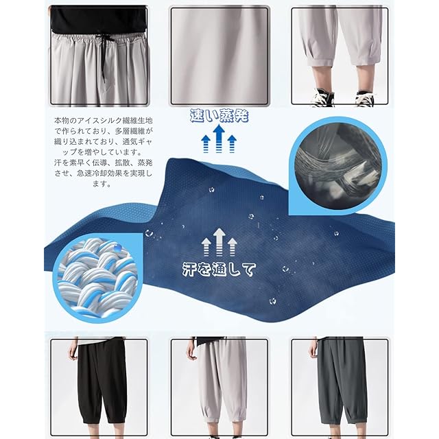 パンツ メンズ 七分丈 夏 接触冷感 クロップドパンツ ハーフパンツ 大きい サイズ ハーレムズボン ワイド ゆったり 涼しい感 アイスシルク ショートパンツ 短パン スポーツ ステテコ black-L