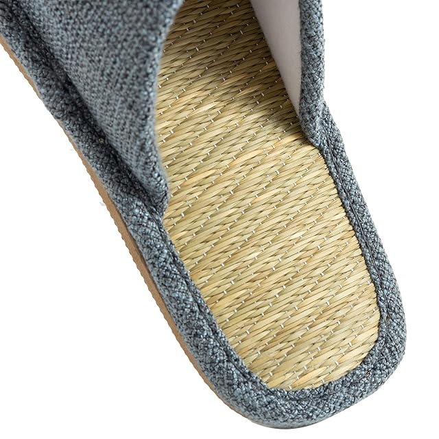 【仕様】:甲生地:ポリエステル 中板生地:イ草 底材:ポリエチレン系樹脂<br>【天然素材で爽快・快適な履き心地】染色せずに仕上げたイ草を中板に使用しました。畳のようなさらりとした足触りです。<br>【蒸れない!通気性の良いのい草スリッパ】い草がもつ湿度調整機能でサラリと爽やかな肌触りは、暑い季節を快適に過ごすには最適なアイテムです。前あきデザインなので、足蒸れが気になる方にもおすすめです。<br>【い草スリッパをおすすめする3つの理由】 ●蒸れにくい ●い草特有の香りがいい ●履き心地がいい (特に足の甲を覆う表面の生地が柔らかいので、履けば履くほど足に馴染みます。)<br>【洗濯情報】:洗濯不可(水洗いおよびドライクリーニングはできません。汚れが付着した場合は固く絞ったタオルなどで軽く拭き取ってください。)