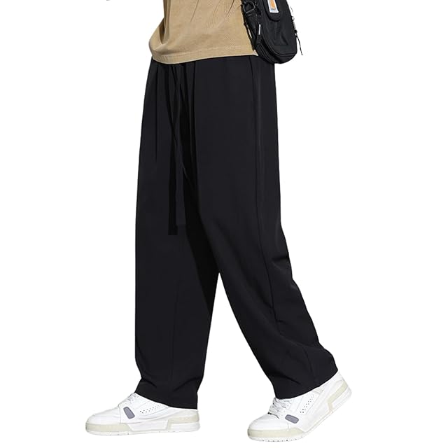 [xulee] 冷感パンツ ロングパンツ ワイドパンツ メンズ 夏服 アイスシルクパンツ 大きい サイズ ゆったり おしゃれ ビッグ シルエット ジョガーパンツ ズボン スウェットパンツ 薄手 涼感 涼しい 吸水速乾 かっこいい black-L