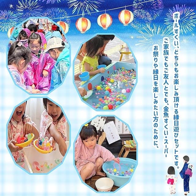夏祭りの雰囲気を自宅で楽しめる完璧なセットです!伝統的な日本の縁日の定番、金魚すくいとスーパーボールすくいが一つのパッケージに。お子様の誕生日パーティーやイベント、家族での楽しい時間作りに最適です。子ども会や夏祭りの出し物としても大人気。自宅で本格的な縁日気分を味わえる、夜店の雰囲気たっぷりのセットです。夏の思い出作りに欠かせないアイテムで、お子様の歓声が聞こえてきそうな楽しいおもちゃセット。室内外問わず、いつでもどこでも縁日気分を演出できます。家族や友達と一緒に、懐かしい縁日の雰囲気を存分に楽しめる、思い出に残る夏のレクリエーションアイテムです。