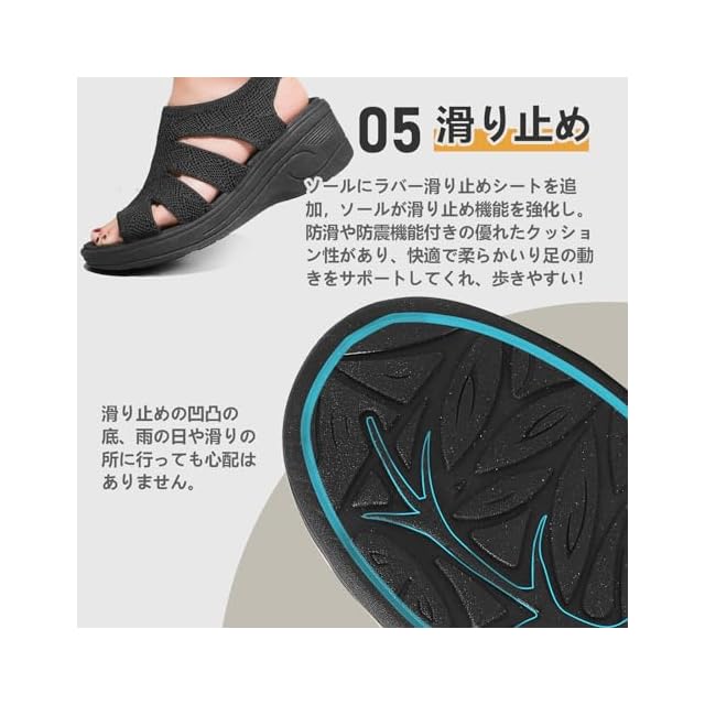 【滑り止め】ソールにラバー滑り止めシートを追加,ソールが滑り止め機能を強化し。防滑や防震機能付きの優れたクッション性があり、快適で柔らかいり足の動きをサポートしてくれ、歩きやすい!滑り止めの凹凸の底、雨の日や滑りの所に行っても心配はありません。