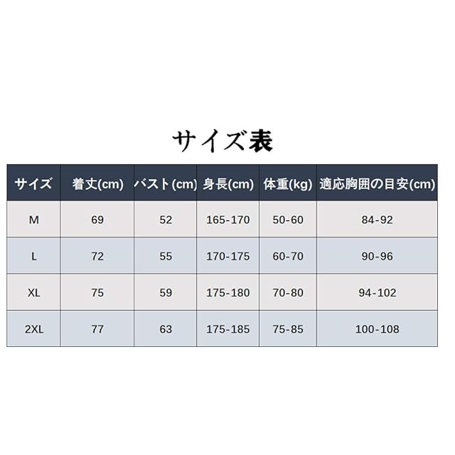 【SIZE:2XL】身長の目安:175-185cm体重:80-90kg適応胸囲の目安:100-108cm