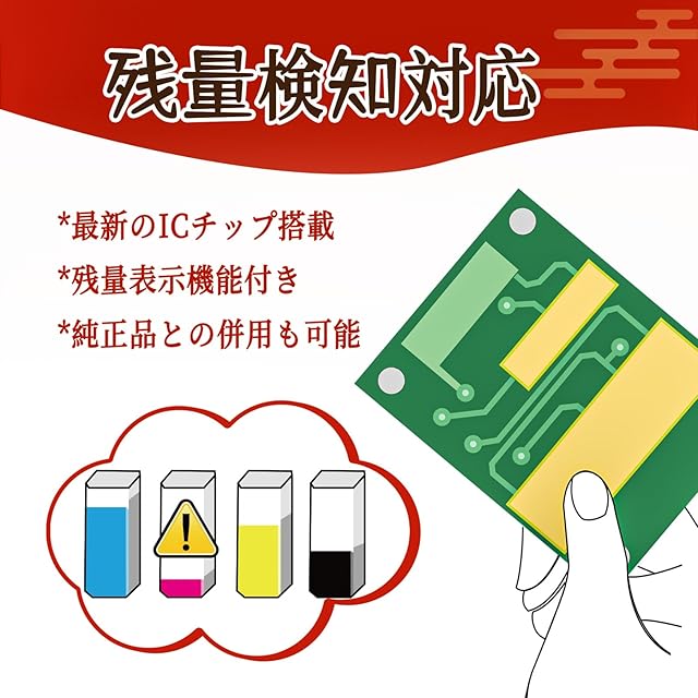【高性能】残量表示対応の最新ICチップを搭載、純正インクとの併用も動作確認済みです。1本ずつ袋に入っていますので、製品破損やインク漏れなど不具合の状況も最大限抑えられます。