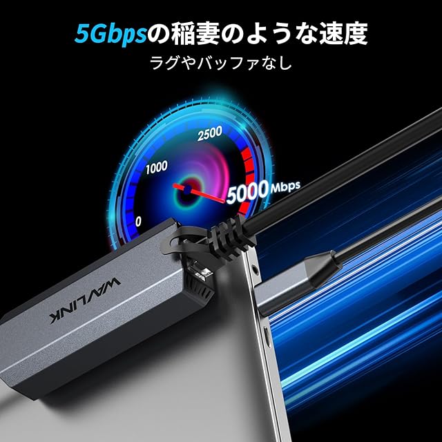 商品名:WAVLINK USB C 5Gbpsイーサネットアダプタ、ドライバ不要のRJ45ギガビットLANイーサネットネットワークアダプタ、ノートパソコン、コンピュータなど、Thunderbolt 5/4/3対応、MacBook Pro/Air, iPad Pro, Dell XPS用