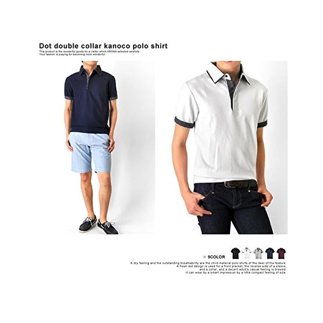 商品名:(アローナ)ARONA ドット使い ダブル衿 カノコ 半袖 ポロシャツ C/M1.5/ ネイビー L