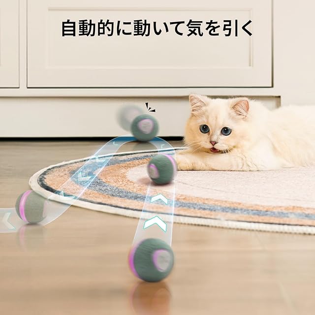 【インタラクティブおもちゃで生きてるみたい】この自動猫ボールには猫ちゃんが触れると反応するタッチセンサー搭載。さらに障害物にぶつかると自動で方向転換!まるで生きているかのように動く不思議な猫ボールに、猫ちゃんの狩猟本能がくすぐられます。追いかけて、捕まえて、また動き出す…まさに夢中体験!