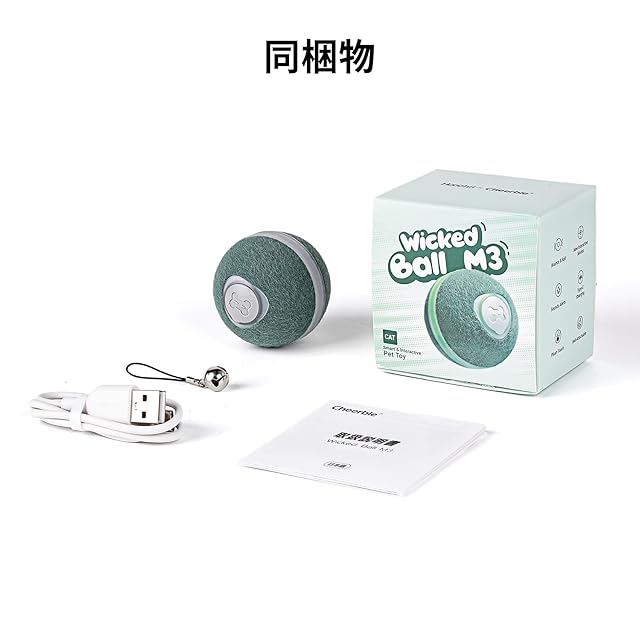 【商品について】Hoochii x Cheerble Wicked Ball M3 限定グリーン <br>【猫が夢中になるボール】3つのモード切替で、このインタラクティブ・ボールが自動で転がり、揺れ、ジャンプして猫の気を引きます。猫ちゃんの性格に合わせた遊び方を選べます。 <br>【ライトと鈴付き】「光」と「音」の2重の魔法で、さらに自動的に動き、猫の注意を一瞬で引きつけて楽しく遊べます。 <br>【ふわふわした表面】テン風のファー素材で、猫が気持ちよく遊べる設計になっています。 <br>【自動休憩機能】10分連続使用後、30分間休止(タッチで簡単に再開)。遊びすぎを防ぎ、猫ちゃんの健康をサポートします。 <br>【紛失防止】小さなボールには通知音が搭載されています。10分以上動かないと「ピーッ」と鳴り、ボールをすぐに見つけることができます。室内での紛失を防止します。 <br>【長時間バッテリー】200mAhのバッテリーで、前世代より65mAh増量し、50分の充電で最大3.5時間動作します。 <br>【広い使用範囲】先進的なコアを採用したことで、前世代よりも使用可能な場所が増え、作動中の騒音も大幅に減少しました。 <br>【耐久性抜群】猫に優しい100%安全な素材を使用。TPU素材とふわふわ表面で、耐衝撃性もあり、猫からの激しい攻撃にも耐えられます。 <br>【安全注意】※30分休止後の自動再始動と通知音の鳴り続きを防ぐために。遊び終わったら必ず電源をOFFにしてください。