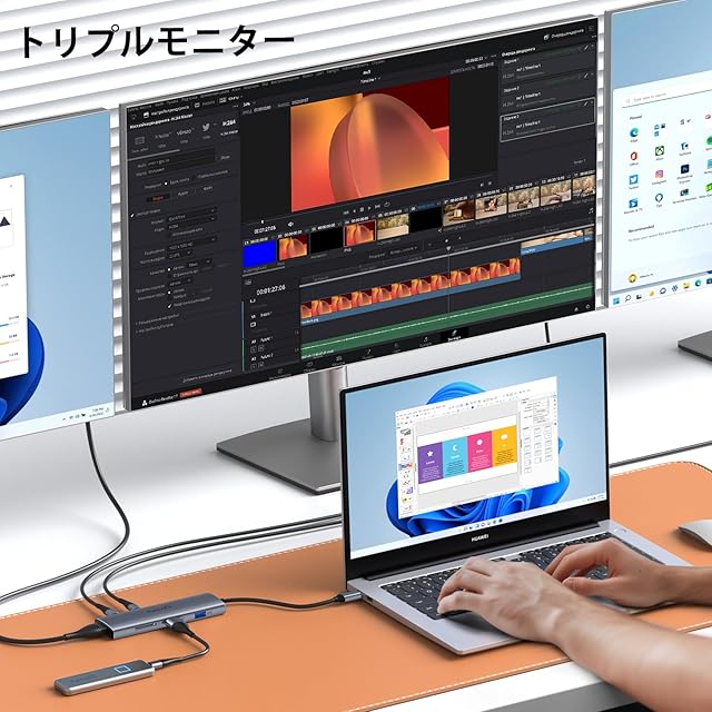 【トリプル/デュアルディスプレイサポート】このハブはデュアル4K@30–60Hzおよびトリプルディスプレイ(2× 4K@30Hz + 1× 1080P)をサポートします。DP1.4対応のノートPCに最適で、2台の4Kディスプレイを拡張可能です(注:MacBookは1台の外部ディスプレイのみサポート)。