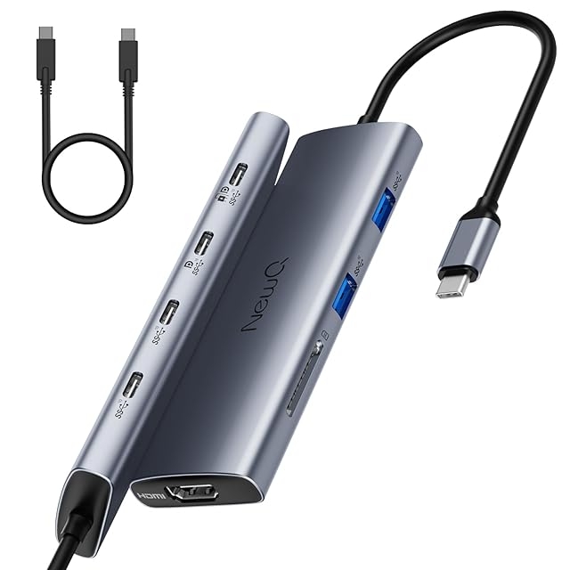 NewQ USB Cモニターハブ 8-in-1 – USB-C PDモニター&ポータブルモニター対応 トリプルモニター出力(1×HDMI + 2×DP Alt)、4K@30/60Hz、Thunderbolt対応、10Gbps×6ポート、SD4.0、映像ケーブル付属