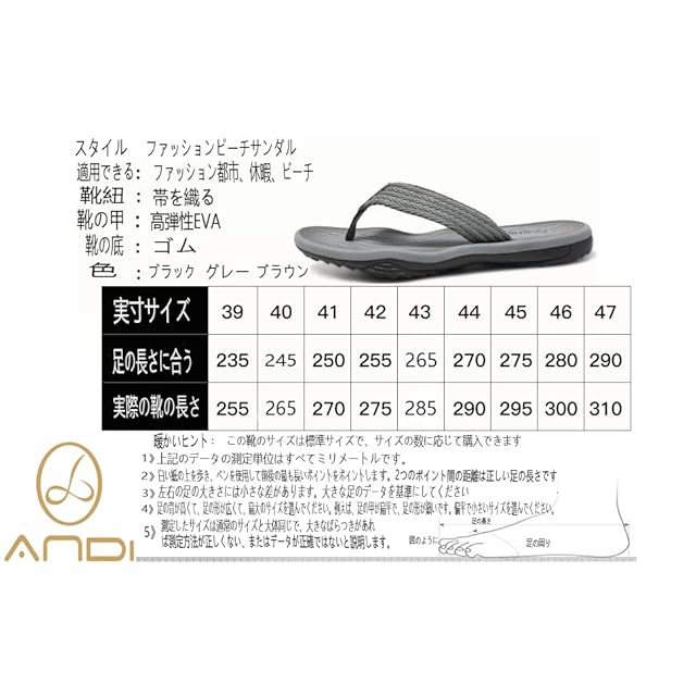 商品名:[ANDI] 新型EVAソフト底滑り止めビーチサンダル、男性用軽量で歩きやすいです (グレー, measurement_25_point_5_centimeters)