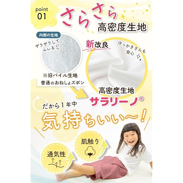 【ハーフ丈が人気の理由は?】 「ムレにくく、1年中快適に使えるおねしょズボンがほしい!」というママパパの悩みから生まれ、改良を重ねてきたハーフ丈。「ムレにくさ・モレにくさ・履きやすさのバランスを考えた設計」で、お子さまの「じぶんで履けた!」を応援し、トイトレのやる気を引き出します。通気性が良く、汗っかきなお子さまでも気持ちよく使えるのが人気の理由です◎