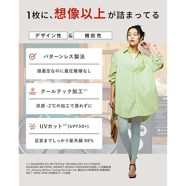 【嬉しいポイントも☝】涼感 -2℃ のクールテック加工だから蒸れずに快適!通気性が良く蒸れず、フリーな履き心地で快適にご使用いただけます。さらにUVカット生地で足首までしっかりカバーされ紫外線対策も万全!