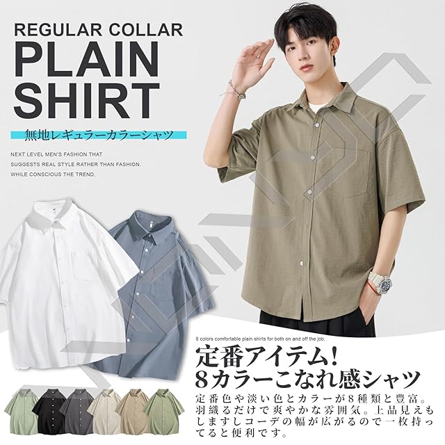 [W Wonyo] しわ加工 半袖シャツ メンズ 涼しい 夏服 シンプル 無地 レギュラーカラー カジュアルシャツ 人気 トップス 薄手 ワンウォッシュ 上着 かっこいい服 軽量 吸水 速乾 ドライ しゃつ ノーアイロン 羽織り ゆったり 大きいサイズ 全8色 shirt for men 春 夏 smoke blue M