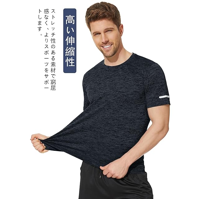 【軽量・ストレッチ性】このtシャツは繰り返し着てもシワや型崩れが起きにくいし、また軽量素材を使用していてストレスがなく動けます。普段ジムに通っている方には着替えが手軽に持ち運べ、適度な伸縮性があり、動きやすさと快適さを両立しています